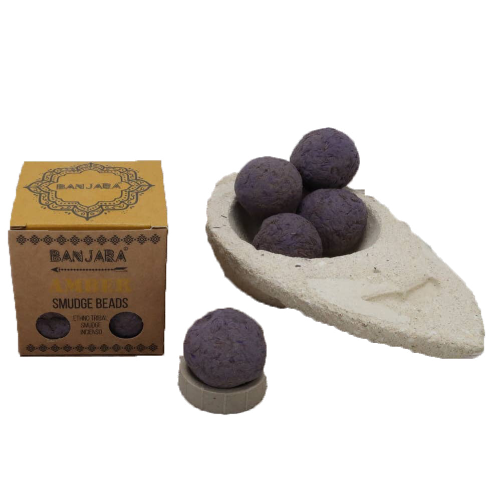 Discover the ancient art of smudging with this Banjara Smudge Beads, expertly crafted in India. These beads are a unique fusion of compressed aromatic herbs, resins, and essential oils, providing an eco-conscious and efficient method to cleanse and purify spaces. They are perfectly suited for spiritual practices, meditation, or creating a tranquil and fragrant ambiance.