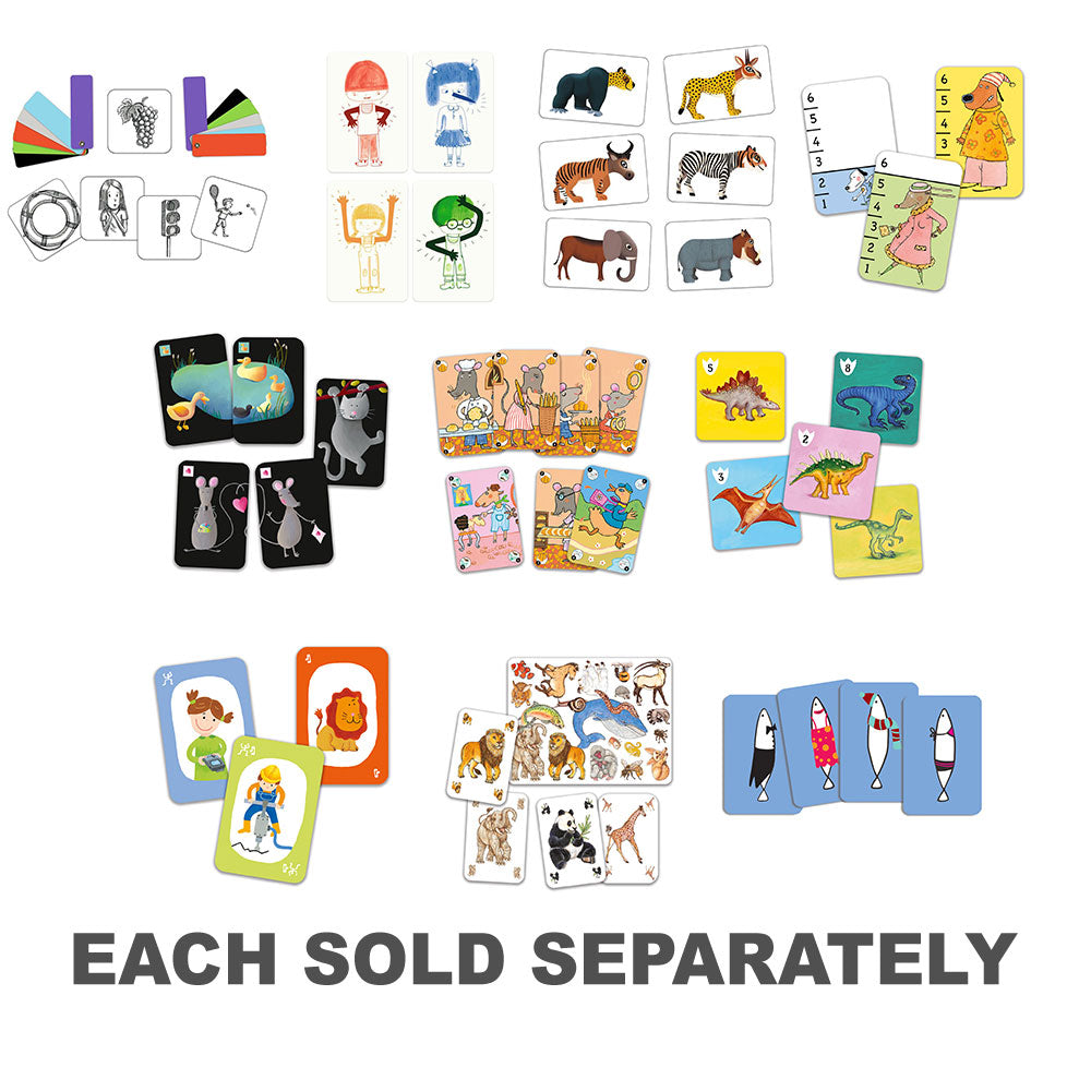 A fun 15-minute observation and memory game. Each player has 5 sardine cards face down in front of them. A large box of sardines card is then revealed for a few seconds to all of the players before being hidden again. Each player may then look at their 5 cards, and choose the ones they think were in the box of sardines. Correct guesses will win you a point, but incorrect guesses will lose you TWO points, so watch out. The player with the most points once all the cards are gone is the winner.