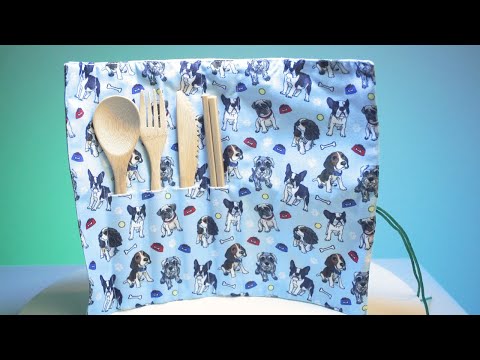 - Set includes: spoon, knife, fork, chopsticks, placemat/wrap, drawstring pouch.