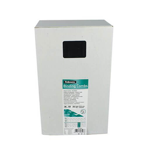 This pack of 50 binding combs provides a professional looking solution to presenting projects, sales pitches and various other multi-document collations. Measuring 30cm in length and suitable for A4 documents, these binding combs are an attractive and space saving way to keep materials together without the need for bulky binders or lever arch files. They can also be used with plastic covers for a wipe-clean finish on important documentation. These 32mm combs provide a capacity of 241-280 80gsm sheets of paper and are made from high quality black plastic. Use with any 21-ring comb binder.