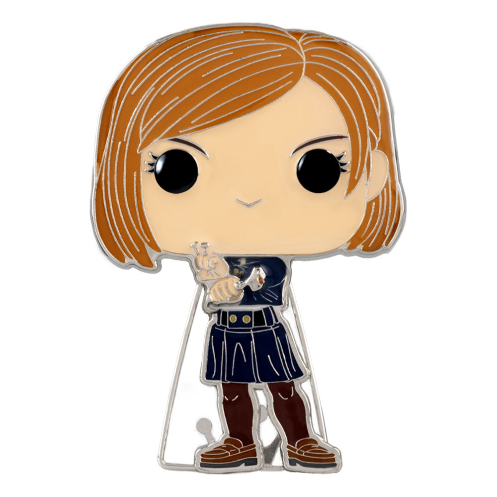 This Pop! Pin features 3D molded metal, silver-colored hardware, and a built-in stand.