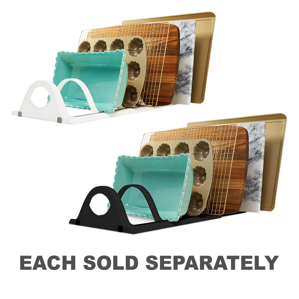 The organiser is perfect for storing bakeware such as trays, cooling racks, cutting boards and even casserole dishes, with the dividers able to be adjusted to create ideal spaces.