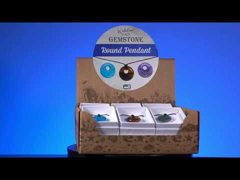 Quality leather cord necklace featuring a round gemstone pendant. Item may vary between 6 gemstones: fluorite, hematite, howlite, amethyst, rose quartz, gold tiger eye.