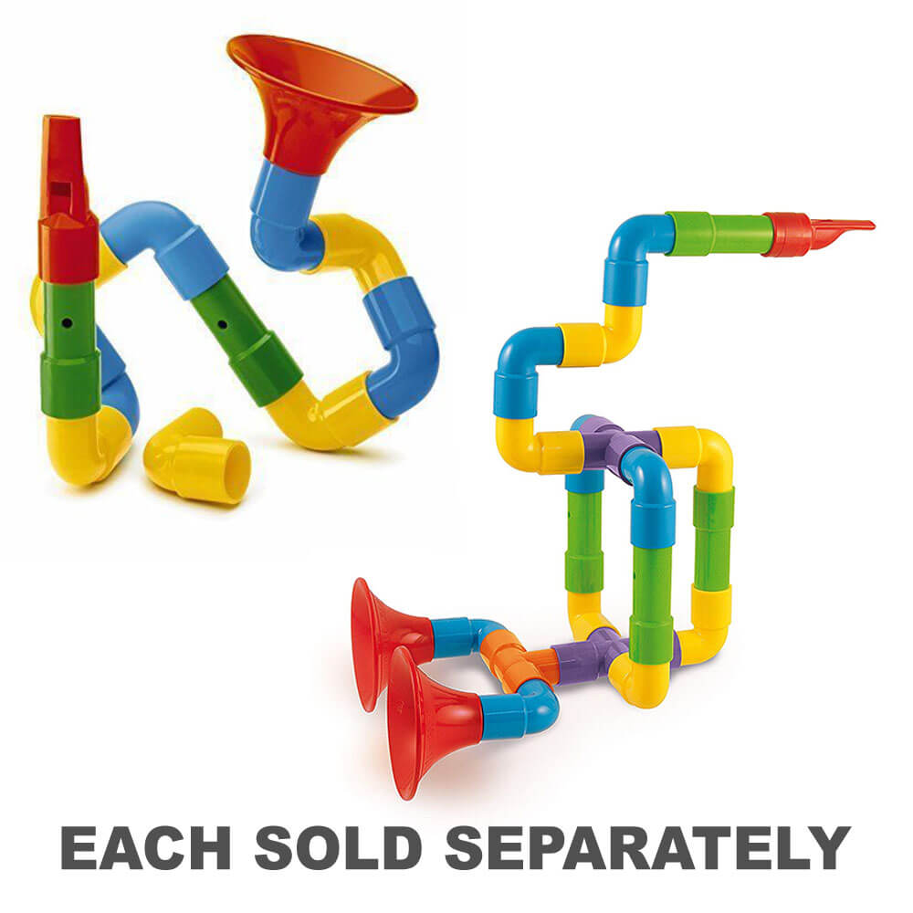 The Super Saxoflute toy has enough pieces to make two complete musical instruments so this version is fun for siblings or play dates! The Super Saxoflute is also a great musical toy for preschool classrooms. Kids can work together or separately to make imaginative musical instruments and then play together as a band or orchestra!