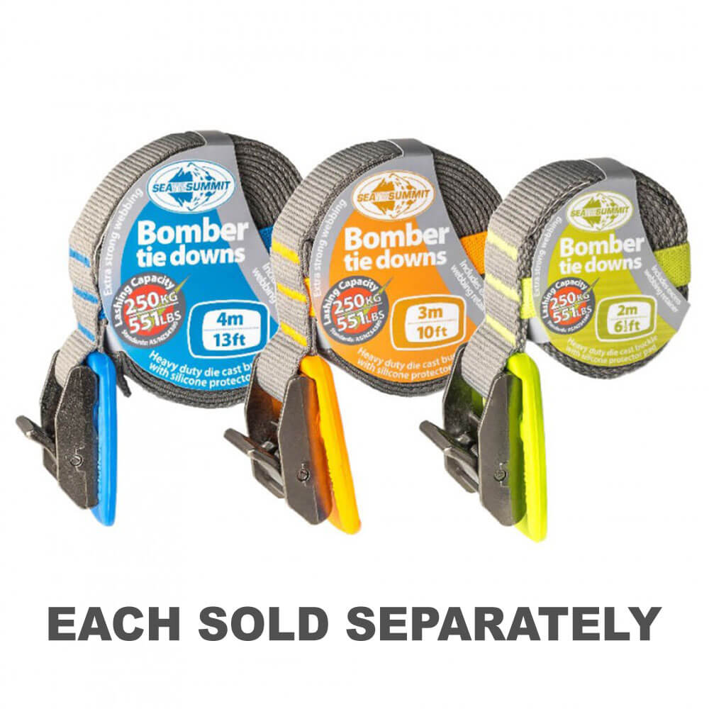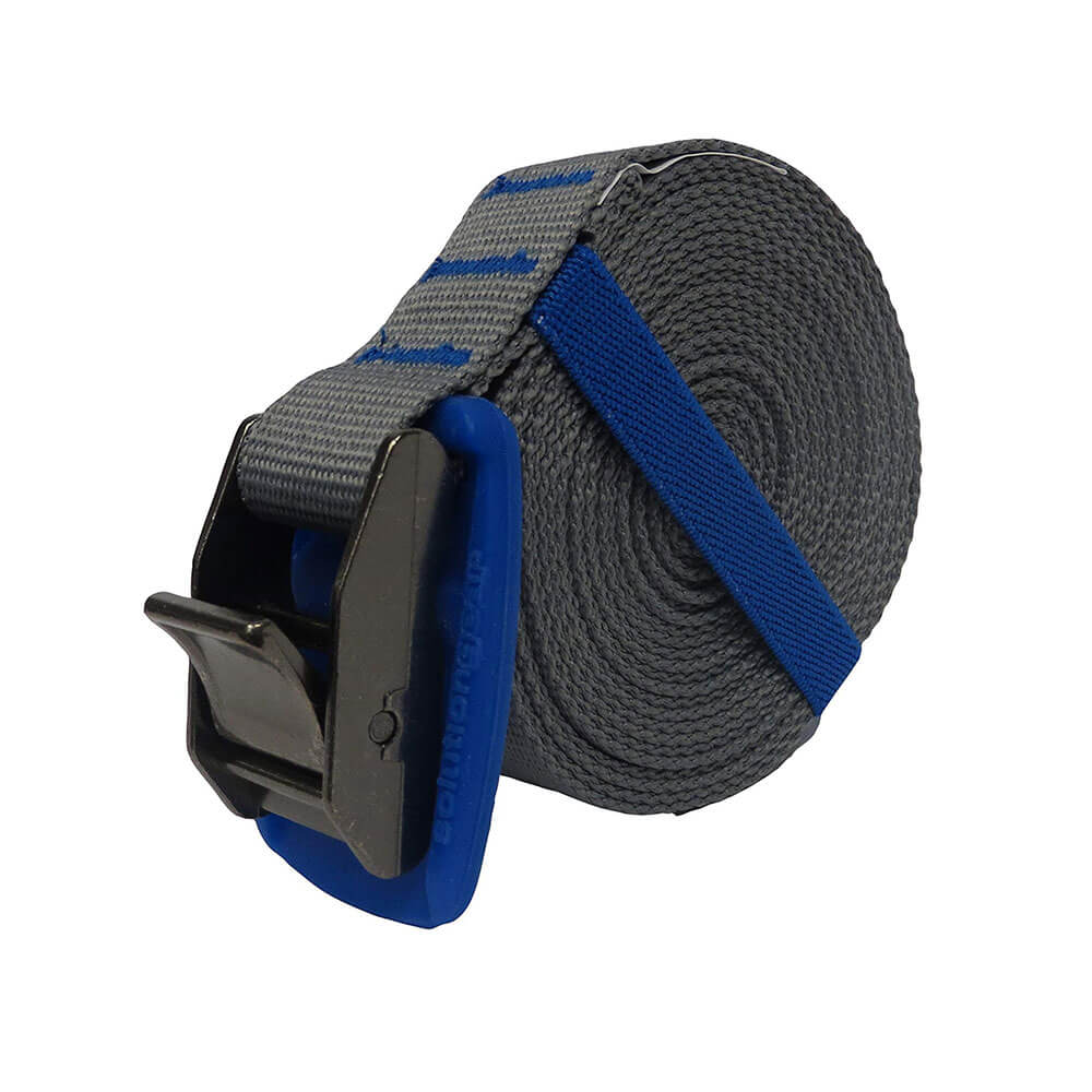 This all purpose tie down features die cast nickel plated zinc alloy buckles with a rubber protector pad. The webbing has been upgraded to 25mm UV protected polyester webbing. A handy, colour-coordinated elasticised webbing retainer keeps the tie downs neatly coiled when not in use.
