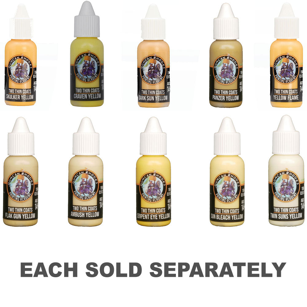 The Duncan Rhodes Painting Academy "Two Thin Coats" Paint Range is a range of paints developed from the ground up with some of the best paint development chemists in the world. These are not paints we just bought off the shelf and bottled. We developed each colour to meet our high standards of what we thought a miniature paint should be. We have been working in partnership with Trans Atlantis Games to create a set of paints that would be useful to any level of hobbyist. Whether you are a beginner or a seasoned painter, we believe that you'll find using these paints an absolute joy to use! We are both extremely excited for hobbyists around the world to get their hands on these paints and to give them a whirl . . . or to apply two thin coats!