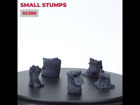 - Four dry tree stumps of a variety of European trees, with detailed bark texture and interior. Ideal to place on dioramas, choosing the tones to depict wet or dry environments, even adding tufts or moss from Vallejo Scenery references.